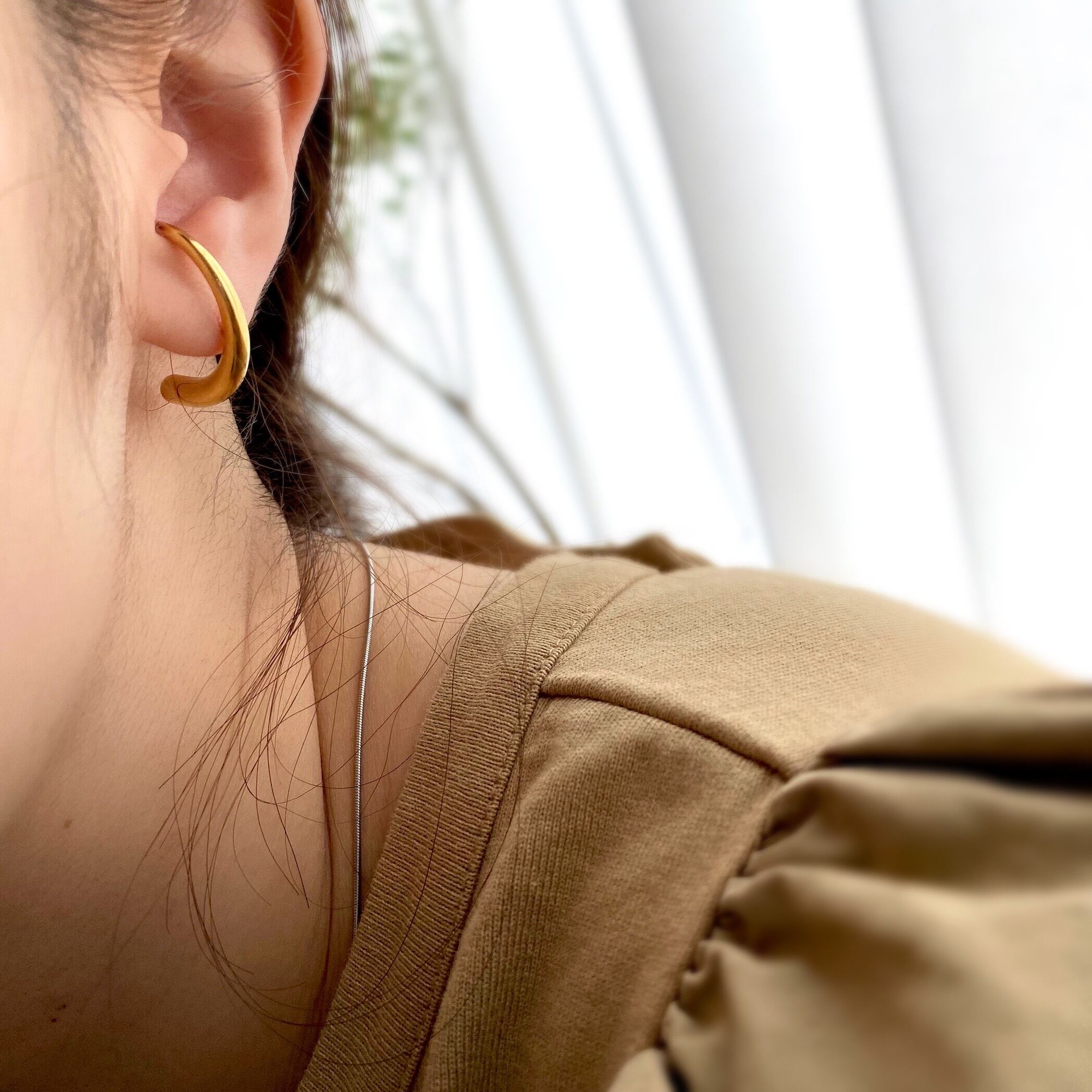 滑らかな女性らしいフォルムと上品な色味が顔まわりをさりげなく華やかに飾ってくれます。