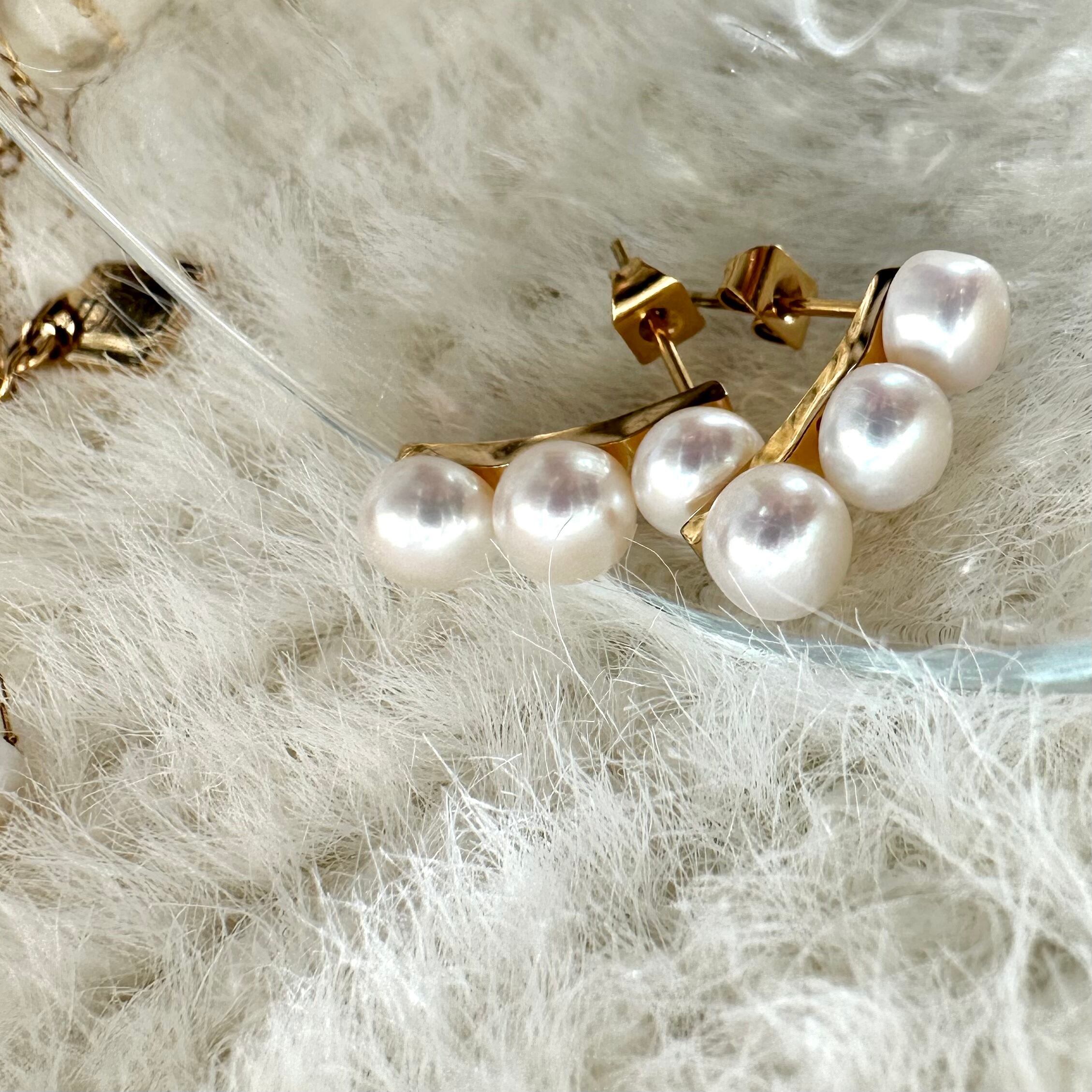 316L line pearl pierce(淡水パールピアス/サージカルステンレスピアス)